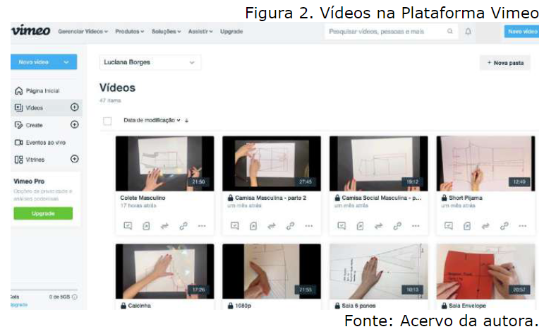 Posta essa nova realidade, algumas situações se tornaram evidentes: por exemplo, alguns alunos necessitaram aumentar a banda da internet em suas casas, visto que ela se tornou um meio imprescindível para que o contato com os discentes acontecesse na forma síncrona. Apesar disso, uma série de limitações acabaram por ser apresentadas para a execução do material para as aulas. Ambientes domésticos precisaram ser adaptados para que, no momento das aulas, a intimidade de suas casas fosse exposta da menor forma possível. No caso do presente estudo – que, por ser uma atividade prática, necessita de exemplificação e clara visualização da evolução do processo de construção de uma modelagem de vestuário - equipamentos de iluminação precisaram ser adquiridos, assim como instrumentos de suporte de câmera tiveram que ser improvisados, para que as filmagens dos processos analisados pudessem ser realizadas com melhor qualidade. Além disto, foi preciso que o professor se apropriasse, mesmo que minimamente, de ferramentas de edição de vídeos, melhorando a organização desses ou até mesmo reduzindo seus tamanhos – acarretando numa menor qualidade, mas permitindo assim que pudessem ser transpostos para plataformas remotas com mais facilidade.
