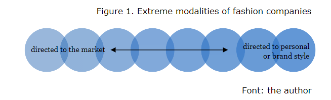 Regarding market expectations, fashion designers must balance permanent and seasonal aspects. Permanent aspects refer to branding and positioning strategies and mid-and long-term decisions about the brand's style identity. In turn, seasonal aspects indicate fashion trends and the ability to gradually introduce market innovations, modernizing the product offer. Based on a greater and lesser degree of adoption of each of these aspects (permanent and seasonal), we can consider two extreme poles of the fashion company modalities – in addition to the possibility of gradation between both these poles (Figure 1).