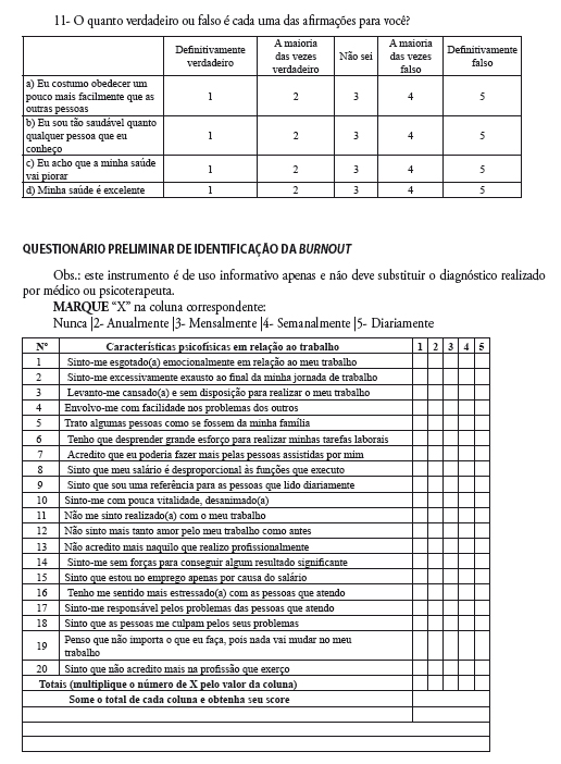 O teste MBI é um questionário preliminar de identificação da Burnout, que já foi validado pelo Núcleo de Pesquisas Avançadas sobre a Síndrome de Burnout, pelo Departamento de Psicologia da Universidade Estadual de Maringá, e sofreu algumas adaptações de terminologia para melhor direcionar os grupos pesquisados. É o instrumento mais utilizado nas pesquisas sobre a síndrome, chegando a ser considerado uma verdadeira tautologia com equivalência entre o constructo e seus instrumentos de medida, isto é, o “Burnout é o que se mede com o MBI” (SILVA; BRAGA; SILVA, 2009).