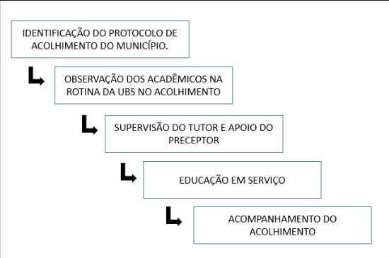 A Figura 1 representa as etapas das atividades do PET-Saúde/GraduaSUS no processo de acolhimento de usuários da UBS.