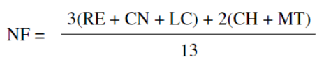 Para o curso de Odontologia, a NF é dada a partir da média ponderada de cada componente, de acordo com os pesos apresentados na Tabela 1, por: