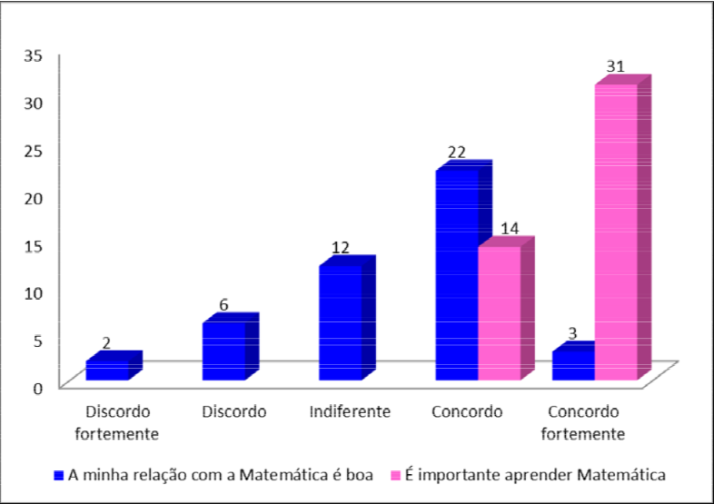 Para compreender a visão dos cursistas sobre a Matemática, foram utilizadas todas as afirmações do questionário, considerando-se duas delas para esta análise: “A minha relação com a Matemática é boa” e “É importante aprender Matemática”. O Gráfico 1 exibe as respostas dos cursistas: