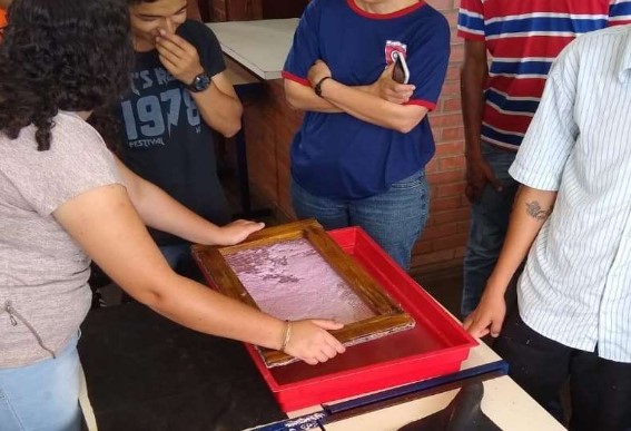 Desse modo, a atividade proposta foi guiada a proporcionar o protagonismo do aluno frente ao processo de ensino e aprendizagem, e foi dividida em momentos. No primeiro momento, realizou-se a apresentação da proposta juntamente com a discussão inicial sobre a importância de reutilizar os recursos naturais e modificados pelo homem, pois o “Papel Semente”, além do impacto pela inovação e criatividade, é produzido com o diferencial de aproximar conceitos de sustentabilidade. Também foi discutido sobre as possibilidades de utilização do “Papel Semente” por cada participante. Após as primeiras conversas e reflexões, a turma foi dividida em grupos de 3 a 5 alunos. A matéria-prima para a atividade foi o papel já utilizado e descartado pela escola, em seus setores administrativos.