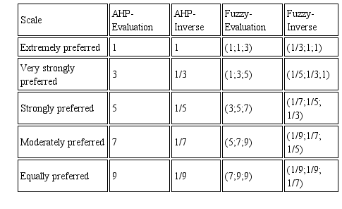 The fahp theories improve structures which qualify the decision-making processes for problems or suggestions, chosen through criteria that are considered of greater importance. Therefore, Van Laarhovem and Pedrycz (1983) suggest that four application steps can be developed for the application of FAHP.Before starting the proposed steps mentioned in the previous paragraph it is necessary to organize the process of transformation of scales. First the AHP scales (odd values) are organized and later transformed to a fuzzy scale, as shown in Table 1.