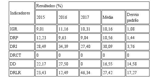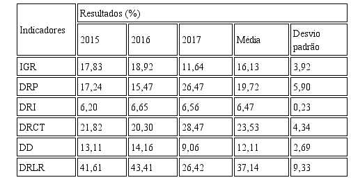 Na seção a seguir serão apresentados os resultados, seguidos das análises, a partir da obtenção dos referidos índices.