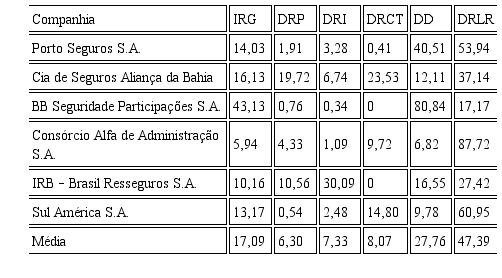 A remuneração de empregados não parece ser uma preocupação latente dessas companhias, o que pode levar a uma discussão sobre responsabilidade social empresarial. Também não há grandes investimentos com recursos de credores nesse setor. Já a distribuição de riqueza com o governo, com exceção da IRB – Brasil Resseguros, não se pode dizer significativa a parcela a ele destinada. Percebe-se que, em média, esses foram os dois grupos que menos se beneficiaram do da riqueza gerada por essas empresas.