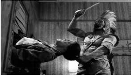 Antes de los años setenta, cuando la deliciosa ingenuidad de Roger Corman y la Hammer era lo predominante en un terror cinematográfico aún por asentar, la violencia y el odio sufridos por los indios ya hacía tiempo que se mostraba en los western sin dobleces, en un proceso a medio camino entre la naturalización y la censura de un hecho histórico consumado. Ahí están Centauros del desierto (The Searchers, 1956), Pequeño gran hombre (Little big man, 1970) o Un hombre llamado caballo (A man called horse, 1970) como ejemplos del sentimiento de culpa asentado en el inconsciente colectivo de una nación que el cine se encargó de reflejar. De cualquier modo, este reconcomio no es uniforme y si bien encontramos films como los anteriores, donde directamente se ejemplifica el genocidio, hay otros que tratan la cuestión desde una perspectiva más insinuante, sugestiva y simbólica. Así, el recurso del espíritu de un piel roja que vuelve buscando venganza es un método indirecto para reflejar un complejo nacional tan consciente de sí mismo como en cualquier otra película moralista de indios y vaqueros (Bosch, 1986, p.77).