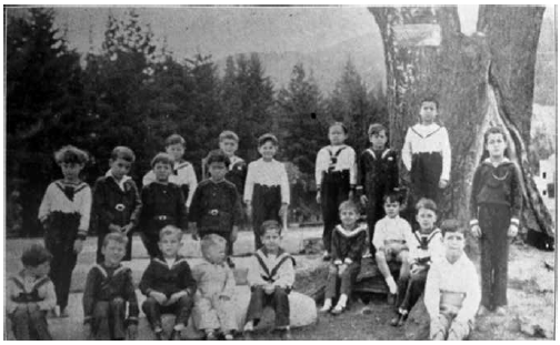 Al lado de la educación estatal, la revista Rin Rin era un dispositivo transformador de la mentalidad tradicional fundamentada en la familia, la Iglesia y las tradiciones. Liberar al niño de los poderes autoritarios y restrictivos ejercidos por la familia patriarcal mediante la iluminación del conocimiento era una de sus funciones. Otra forma de ruptura con la tradición fue la introducción de las pedagogías de la escuela activa. En sus imágenes aparecieron jóvenes realizando distintas actividades en contacto con la naturaleza para fortalecer el cuerpo (figuras 17 y 18), poniendo en práctica el conocimiento a través de la observación directa de la naturaleza en conjunto con el desarrollo de la cultura física (figura 16) y jugando colectivamente. En Rin Rin se expuso el equilibrio entre actividades educativas en interiores y en exteriores. Las imágenes de la revista mostraron la importancia que las nuevas pedagogías le atribuían a la relación entre la importancia del estudio, el conocimiento vivo mediante observación y experimentación directa y las actividades lúdicas.