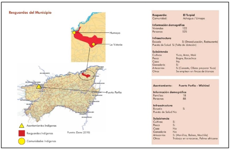 El municipio de Puerto López se encuentra ubicado en el departamento del Meta. Comúnmente se conoce con el nombre del “Ombligo de Colombia” debido a que, a tan solo 7 km del casco urbano, se marca el centro geográfico del país, a 4° y 5 minutos de latitud norte (4° 5' L. N.) y a 72° y 57 minutos latitud oeste (72° 57' L. O.). En referencia al contexto local, el resguardo Umapo, hogar de la comunidad indígena Achagua, se encuentra asentado en la vereda “La Victoria”, kilómetro 76, muy cerca de la vía que comunica a los municipios de Puerto López y Puerto Gaitán en el departamento del Meta. Es de resaltar que el área del resguardo poco a poco ha sido rodeada por importantes proyectos agroindustriales, detrás de los cuales la “modernidad” y la “industrialización” llegaron a este ancestral territorio, convirtiéndose así en un territorio de especial interés para importantes empresas privadas (Cardona y Maturana, 2012).