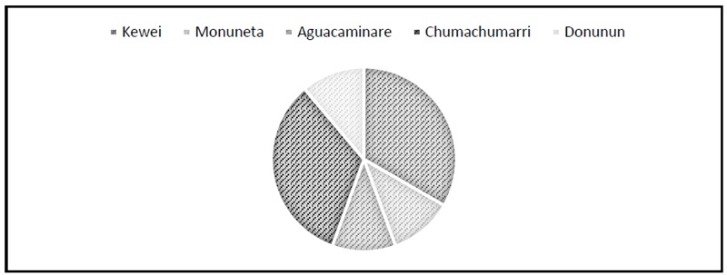 La comunidad Achagua, según el Censo Nacional de Población y Vivienda (CNPV) está constituida por 796 habitantes por tal motivo, la muestra no fue probabilística. Siguiendo a López (2004, p. 34 citado en López, 2020, p. 20), “se toman los casos o unidades que estén disponibles en un momento dado”. En este orden de ideas, la muestra estuvo conformada por 10 familias 272chaguas y 15 estudiantes indígenas pertenecientes a la Institución Educativa (IE) Yaaliakeisy.