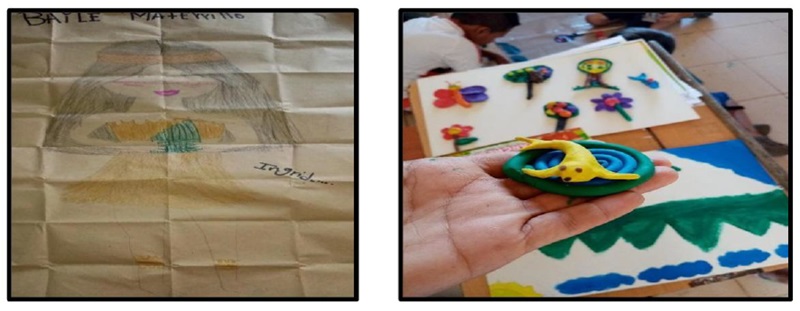 El tercer taller consistió en representar a través de manualidades con plastilina las cosas que los caracterizan como indígenas, además de la construcción de carteleras que abordaran el tema de la ancestralidad. Por medio de estos talleres se logró incentivar a los estudiantes sobre la importancia y el sentido de pertenencia en los procesos de la identidad cultural y personal. Esto con el propósito de enriquecer la formación, la construcción del tejido social y la subjetividad de la persona, gracias a que permite la autorreflexión de los procesos culturales. Aunque los docentes de las escuelas transmiten estos conocimientos, se ve claramente que existe una debilidad en los infantes respecto a la apropiación de su cultura (véase la figura 6).