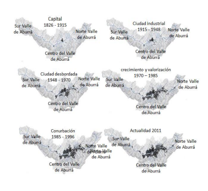 El AMVA es considerada la subregión de Antioquia con más dinamismo económico, social y político del departamento, se urbanizó de manera acelerada, producto del mismo monopolio que tenía la ciudad hacia la región, que hasta la actualidad no ha dejado de crecer (Martínez, 2012) (figura 1). En 1905, representaba el 16 % de la población del departamento, en 1951 el 32 %, en 1973 el 51 % y 2013 el 62 % (AMVA, 2013). “Este sostenido crecimiento demográfico solamente es explicable por el progresivo mejoramiento de las condiciones de vida de la ciudad, así como por la migración de las gentes de la región que controlaba” (Patiño et ál., 2015, p. 66).