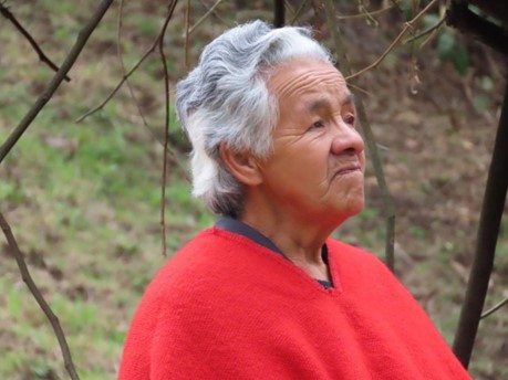 ¿Cómo se tuerce? Tiene que haber dos hebras. Ahora qué hice el tortero [utensilio para hilar]… vuelve y se le coloca al huso el tortero, aquí con estas dos hebras vamos a amarrar, sea para cobija o sea para ruana, hay que hacerle ese mismo proceso. Para torcer, ay, carambas… aquí estamos torciendo, sea para ruana o sea para cobija, hay que torcer. Le bajamos acá. Si se ve las dos hebritas, el torcido de las dos hebras. Aquí se sigue torciendo hasta llenar este huso bien llenecito. Cuando ya esté bien lleno que uno no lo pueda manejar, vamos a hacer… a hacer una bola… aquí ya se hace la madeja, esta madeja se hace para lavar la lana, ya estando seca esa madeja, se vuelve otra vez a hacer la bola para así como… como esta que ya está torcida, ya se hizo la… y se lava para llevar a la…, a donde se vaya a mandar a hacer la cobija o la ruana. Pero la lana tiene que ir lavada para que no nos quede una cobija o una ruana muy estorbosa y muy fea, ése es el proceso de la lana, pues se requiere de mucha paciencia y de mucho cuidado, porque tiene que estar muy bien escarmenada la lana y tenemos que saberla trabajar muy bien4.