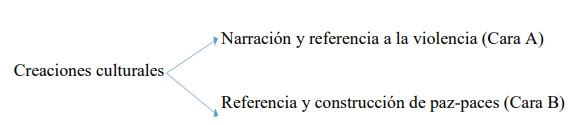 Los dos horizontes desarrollados (pasado, fatalismo y literalidad, frente a presente, esperanza, ejemplo y construcción) se evidencian en la historia del arte en Colombia: hay creaciones culturales sobre el conflicto, la violencia, la memoria y la paz que se leen desde la mera referencia y otras que generan encuentros con los públicos en los que se supera la referencia y se invita a la acción. Hablar del conflicto armado en Colombia implica reconocer estas dos caras de la moneda. Una cara (que llamaremos A) muestra la acumulación de violencia y la otra cara (que llamaremos B) muestra la posibilidad de construir la paz, y en esta media las creaciones artísticas que han nacido de pensar, sentir y exponer los modos de ser del conflicto y del “posconflicto” empiezan a consolidar una connotación ontológica y semiótica diferente, dependiendo de la cara de la moneda que busquen referenciar (figura 1).
