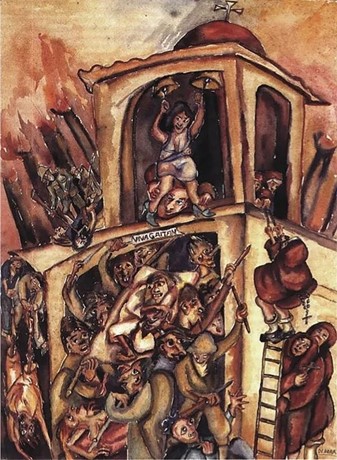 El desconcierto por el rechazo y falta de apoyo por parte del Gobierno no fue exclusivo de Arango, pues en el mismo sentido se manifestó Obregón cuando su obra Masacre fue señalada por el ministerio de Gobierno como una atrocidad y retirada de la exposición que inauguró el artista el 15 de abril de 1948 en la sala de la Sociedad Colombiana de Arquitectos. Obregón llevaba curando y definiendo desde tiempo atrás esta exposición que terminó, en gran medida, siendo una muestra de bocetos y pinturas concebidas y compuestas en la última semana, pues para el artista fue imposible darles la espalda a los horrores del Bogotazo. De este modo, configuró lo que en la historia del arte de Colombia sería la primera exposición dedicada a la violencia.