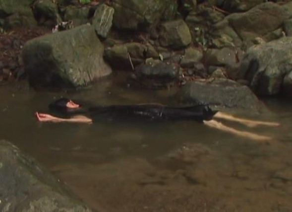 En el horizonte A del contínuum, es posible ubicar creaciones como Ofelia al revés (figura 4), de Claudia Salamanca (2015), una videoinstalación donde que muestra a una mujer que flota en un río, la artista encarnando a Ofelia al límite de la vida que, sin embargo, entre el pulso de la naturaleza y el espíritu de supervivencia nunca se ahoga. Esta creación narra el dolor de las víctimas de una forma encriptada, de difícil inteligibilidad para espectadores no conocedores del lenguaje artístico. Así, exige un alfabetismo cultural que elitiza la recepción de la obra y limita el acceso del mensaje a públicos amplios. Por otra parte, construye una memoria herida, una creación de pasado que profundiza en un dolor particularizado más que un trauma compartido socialmente.