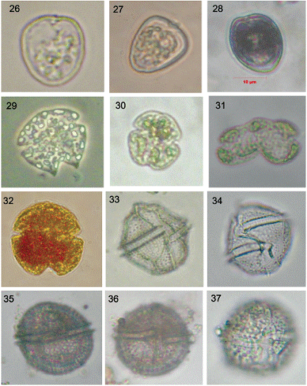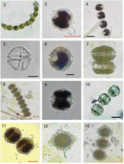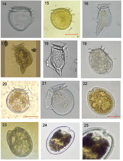 Pyrodinium bahamense L. Plate (Figura 2 (12-13)) Al-Kandari et al. (2009) pl. 13 F-J; Meave et al. (2012) Fig. 154. Toxinas (PSP).