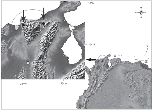 Fishes of the genus Hemibrycon are typically found in clear freshwater habitats in rivers of the Pacific wa tersheds in Panama, coastal Caribbean drainages, Lake Maracaibo and Orinoco River basins in Venezuela, streams of Trinidad and Tobago, coastal basins of French Guiana and Suriname, coastal Caribbean and Pacific drainages, Catatumbo, Andes and Orinoco drainages in Colombia and upper Amazon River drainages of Bolivia, Peru and Ecuador (Bertaco et al., 2007; Bertaco & Malabarba, 2010; Roman-Valencia et al., 2013). Today there are 36 species reported in the genus (Eschmeyer & Fricke, 2013). Of these, 21 species are distributed in the rivers of Colombia, but only one species, H. santamartae, has been reported previously in drainages of the Sierra Nevada de Santa Marta.