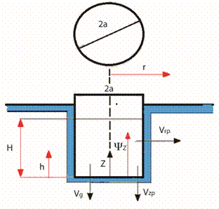 Donde A (ti ) es la superficie sobre la cual se infiltra el agua en el suelo en el tiempo ti [L2], a es el radio del pozo [L] y H (ti ) es el nivel del agua en el pozo en el tiempo ti [L] y el caudal se expresa entonces por: