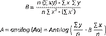 Y = log (F), Ao = log (a), B = B, X = log (t)