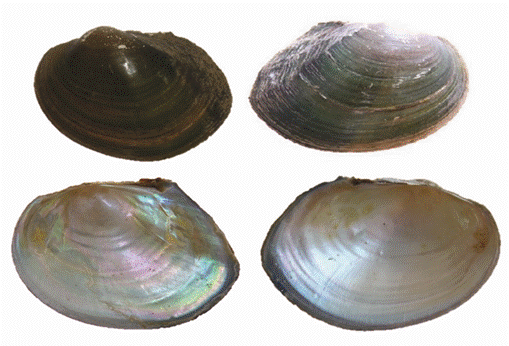 Anodonta luteola has elliptical shell, thin, inflated, and often slightly winged posteriorly and rounded leading edge. The posterior edge of the shell was slightly winged, corrugated, and the umbo is smooth, with concentric ridges. Smooth, shiny and greenish-yellow surface with fine lines of growth were characteristics in the juveniles shells. In adult specimens the shell color turns dark green with strong growth lines. Periostracum of the umbo region spent in adults. Hinge toothless, reduced a single line regularly curved. Adductor muscles hardened, shiny nacre and mildly iridescent (Simpson, 1900 modified) (Fig. 1).