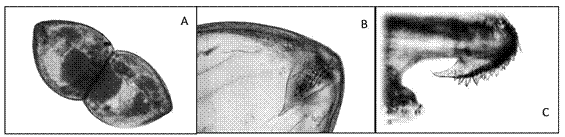 Table 1 shows the measurements taken to gloquidia. The mean dimensions of the glochidia as follows: total length: 311.8μm, height: 331.7μm. The lowest coefficient of variation (3.42%) corresponded to the total length.