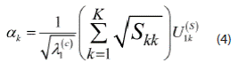 Dónde: es el primer valor propio de la matriz; es la k-ésima componente del primer vector propio de la matriz S de correlaciones vectoriales, calculada a partir del producto de H-S.