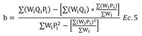 El valor de la pendiente en este tipo de relaciones inversas, siempre va a tomar valores negativos, sin embargo, el signo es una indicación de la dirección de la regresión entre las variables relacionadas y el valor de la pendiente indica la intensidad de esta relación (Moya, 2009). El índice de Smith para su correcta interpretación debe tomar valores entre 0 y 1 porque omite el signo y toma en cuenta únicamente el valor absoluto de la correlación (Barrientos, 1981; Mayor et al., 2012).