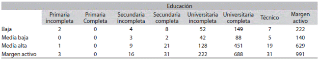 En cuanto al estado civil la satisfacción medio alta corresponde a los solteros y casados, el grupo con escala media baja está conformado en su mayoría por solteros y divorciados, así como el grupo de satisfacción baja (X2=163,379, grados de libertad 10, p<0,000) (Cuadro 4). Los funcionarios que poseen universidad completa se encuentra en la escala de satisfacción media alta (X2=16,236, grados de libertad 12, p<0,181(Cuadro 5).
