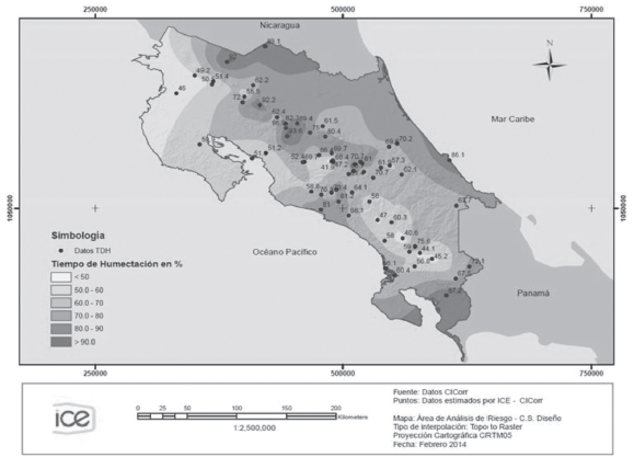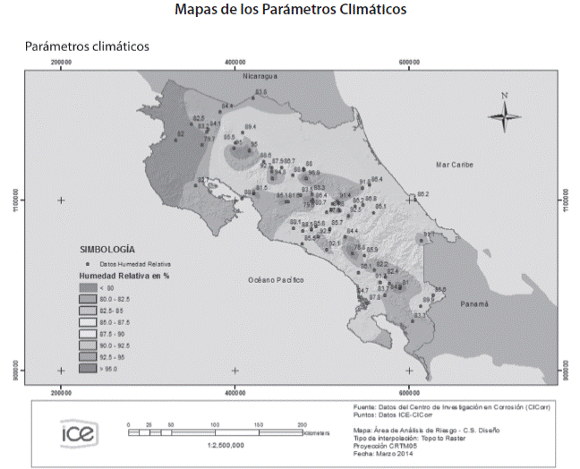 Se consideran los mapas existentes de parámetros climáticos del IMN, así como datos meteorológicos de estaciones del ICE, a partir de los cuales se estiman los mapas principales de parámetros atmosféricos que se utilizarán como base en la obtención de los mapas de corrosión.