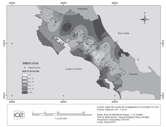 La aplicación de los mapas de corrosión estimativos para Costa Rica es una forma de evaluación general de la problemática en el país.
