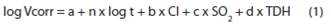 Los modelos de estimación a largo plazo de la ISO 9226 (ISO Corroag) presentan buen ajuste a esta situación, donde adicionalmente el modelado exponencial tiene una dependencia del tiempo de 0,89, asociado a la formación de óxidos de baja protección inicial que se vuelven más protectores con el tiempo.