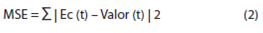 Se calculan como parámetros de control relaciones entre los valores obtenidos por las ecuaciones y los valores reales. Inicialmente se calcula el Error Medio Cuadrático (MSE), buscando que sea mínimo, calculado como: