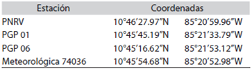 La ubicación de los puntos de control y la estación meteorológica se describen en el Cuadro 1, ubicándose los mismos en la zona sur oeste del Volcán Rincón de la Vieja.