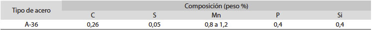 Especificaciones de acero ASTM A36 se expresa en el cuadro 4.