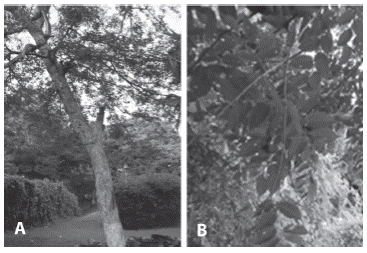 Recolección y preparación de muestras: Las muestras de Maclura tinctoria se obtuvieron de dos árboles ubicados en Liberia, provincia de Guanacaste, Costa Rica (Figura 1). Se recolectaron muestras de hojas, tallos, cáscara y savia del árbol. Las muestras de hojas tallos y cascara fueron secadas en un horno solar durante una semana para ser molidas y tamizadas con un tamaño de partícula de 100mm y 200mm (Figura 2A).