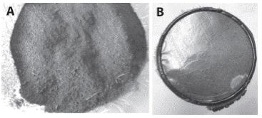 Se fabricaron películas del material compuesto con PEBD y 30% en masa de la mezcla molida de las hojas, tallos y cáscaras del Maclura Tinctoria con un diámetro de 7cm y el espesor de 110 a 180 micras (Figura 2B).