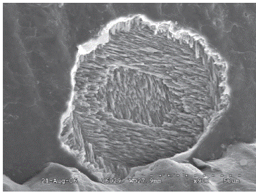 One general difference between these small Spiraxidae and Pseudopeas is size, with Micromena barely reaching 3 mm and other Spiraxidae attaining 5 to 6 mm maximum of orthorhombic interlaced crystals (Figure 4) which determine the tough aragonite material of the shell (Callil & Mansur 2005), in contrast with the weaker structure of Spiraxidae and Subulinidae. But as mentioned, the most important and definitive discriminating trait is the characteristic nepionic sculpture, (Figure 2A, 2B), which is totally absent in Spiraxidae (Figure 3B), Lamellaxis, Opeas and all other recognized genera. Independently of protoconch sculpture presence or absence, its profile also discriminates the genus. In Pseudopeas, it is dome-like, whereas in Spiraxis it is bulbous.