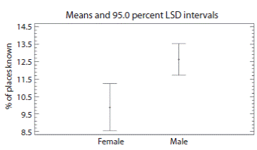 Gender and Knowledge of the law: With respect to gender, male participants were significantly more knowledgeable about the places in which it is prohibited to smoke than their female counterparts (F=5.46; DF= 1, 298; p=0.02) (Figure 3).