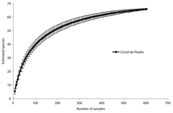 We obtained a good characterization of richness to avifauna of Corral de Piedra Palustrine Wetland, according to the rarefaction curve (Fig. 5) that show high number of species recorded by the study according the accumulation of species and the number of samples.