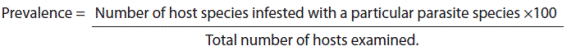 The prevalence (%) of the parasites was estimated as the ratio between the number of infected fish and the number of examined fish expressed in percentages.