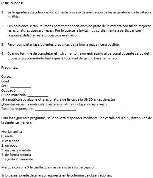 Se agradece a los estudiantes y tutores de la Cátedra de Física por su valiosa ayuda en esta experiencia, así como a Ligia Bermúdez de la UNED por su colaboración en el análisis estadístico.