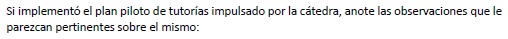 Si implementó el plan piloto de tutorías impulsado por la cátedra, anotar las observaciones que le parezcan pertinentes sobre el mismo.