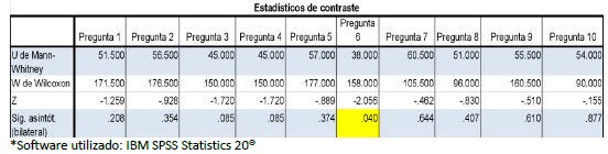 En el apéndice digital 4 se puede observar la prueba de U de Mann-Whitney y W de Wilcoxon utilizada para determinar diferencias entre los dos grupos, cada uno con diferente tutor. En esta prueba se encontró una diferencia significativa entre el nivel de orientación que el personal docente está proporcionando.
