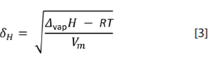 where λ is a measure of the molecular packing density of the constituting particles according to their geometry (e. g., λ = 0,30 for spherical molecules, λ = 0,62 for rod-shaped molecules, λ = 1,2 for very long hydrocarbon molecules, and λ = 1,4 for triacylglycerols, as given by Lezcano-González and Mata-Segreda (2011). Readily comparison of the cohesiveness of liquids (ΔvapH) can also be achieved through equation [2].
