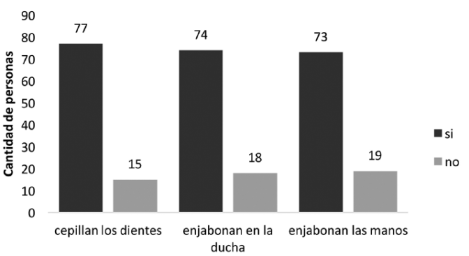 Además, el 19% (17) de los encuestados no acostumbran cerrar la llave de agua mientras se cepillan los dientes, cuando se enjabonan el cuerpo, mientras se bañan o se lavan las manos (Figura 3).