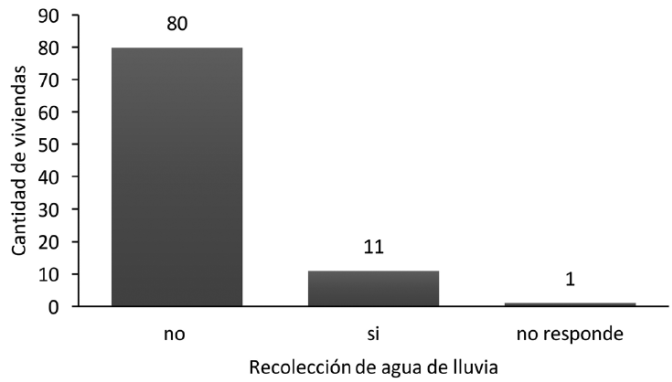 Solamente en el 12% (11) de las viviendas utilizan algún sistema de recolección de aguas pluviales (Figura 5).