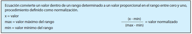 La normalización de los valores de los insumos al rango de cero a uno se realizó a fin de evitar distorsionar los resultados del promedio.