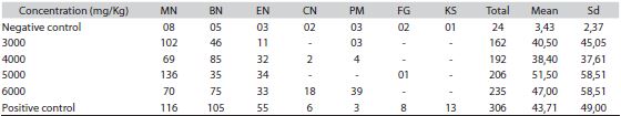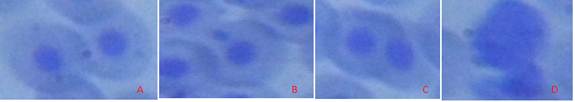 Results of frequency of nuclear abnormalities in mice treated with AgNPs are shown in Table 1. This revealed that frequency of nuclear abnormalities is concentration-dependent such that at 6000mg/Kg of AgNps, the total nuclear abnormalities (235) compared with negative control (24).