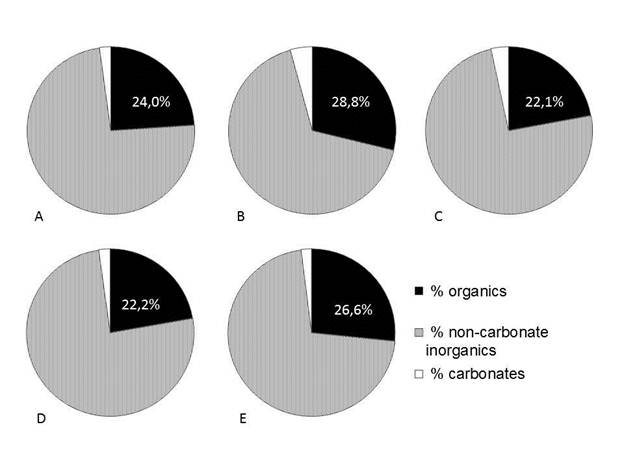 Dean, W. E. (1974). Determination of carbonate and organic-matter in calcareous sediments and sedimentary-rocks by loss on ignition: comparison with other methods. Journal of Sedimentary Petrology, 44, 242-248.